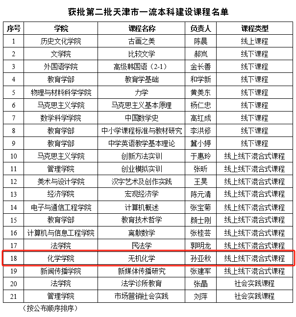 近日,天津市教委发布《市教委关于公布第二批天津市一流本科建设课程名单的通知》(津教高函〔2021〕25号),开云官方版网站登录入口《无机化学》被认定为第二批天津市一流本科建设课程。