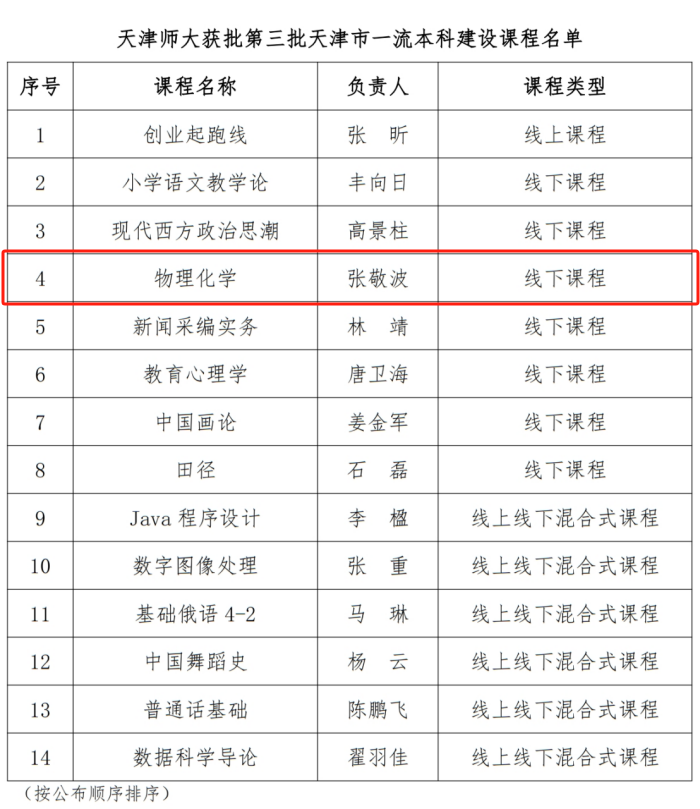 近日,天津市教委公布了第三批天津市一流本科建设课程名单,开云官方版网站登录入口“物理化学”被认定为第三批天津市一流本科建设课程。