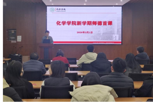 3月1日,学院党委召开新学期全体教职工大会,院党委书记吴金明主持会议并开展师德首课。他结合习近平总书记2026年春节团拜会重要讲话精神、新时代高等教育师德要求及国家近期相关部署,联系师范大学化学学院的育人使命与学科特点提出三点建议:一提高政治站位,深刻把握新时代高校师德师风建设的核心要义;二是深学细悟笃行,把2026年春节团拜会精神融入育人实践;三是坚守底线担当,争做新时代“四有”好老师与化学教育引路人。