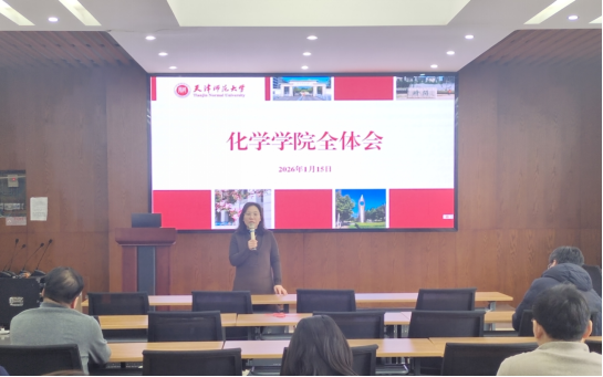 吴金明书记代表学院领导班子向全体教职工做了年度述职,总结回顾2025年度学院党委在党建、人事、教学、科研、安全和学生工作等方面的情况,提出了党委目前存在主要问题及改进措施。随后,吴金明书记就学校2025年发布的《天津师范大学教师文明公约》做了传达,号召全体教师共同践行公约内容,将其内化于心、外化于行,以严谨规范的言行,展现师大教师的良好精神风貌。